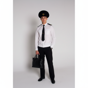 Два боковых кармана, застежка на молнии и пуговице. Шлевки для ремня.
