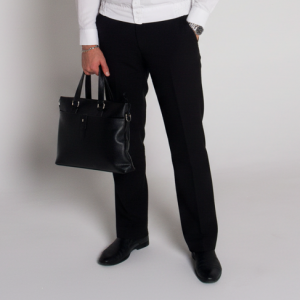 Два боковых кармана, застежка на молнии и пуговице. Шлевки для ремня.